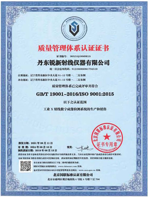 質(zhì)量管理體系認(rèn)證證書