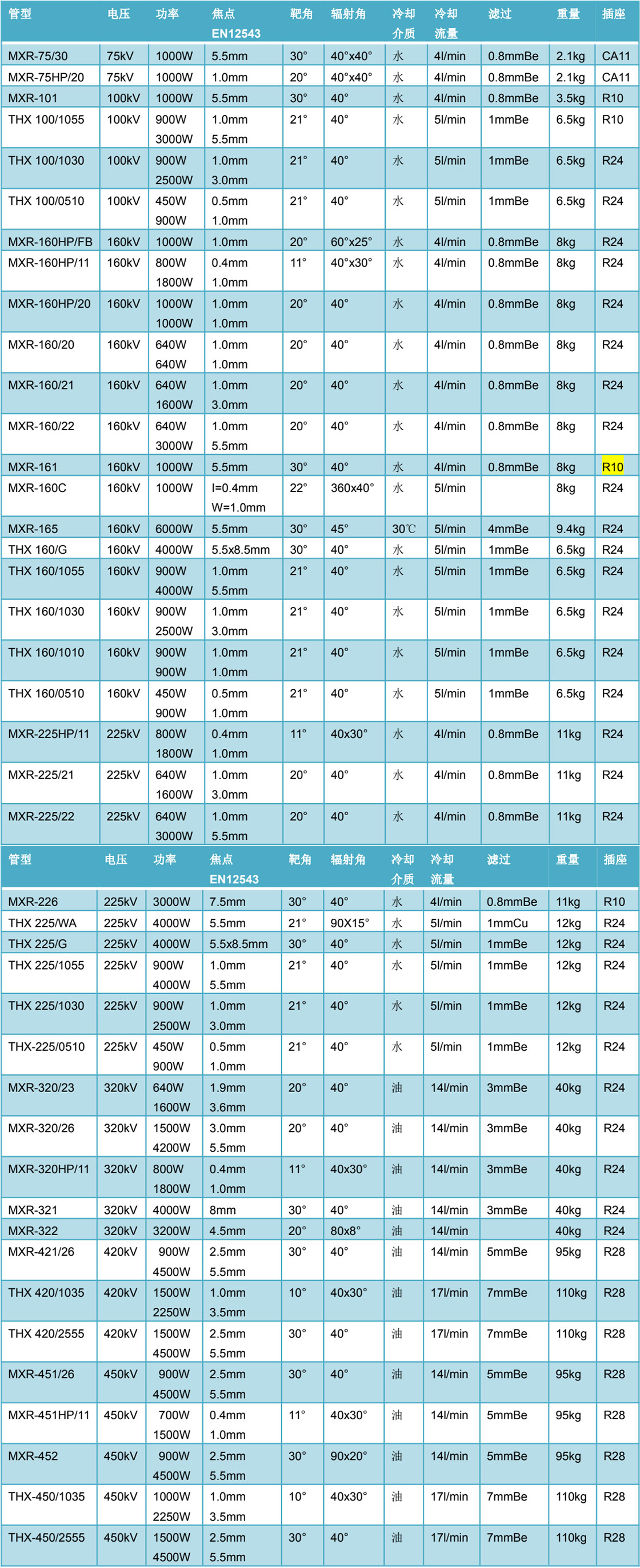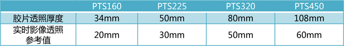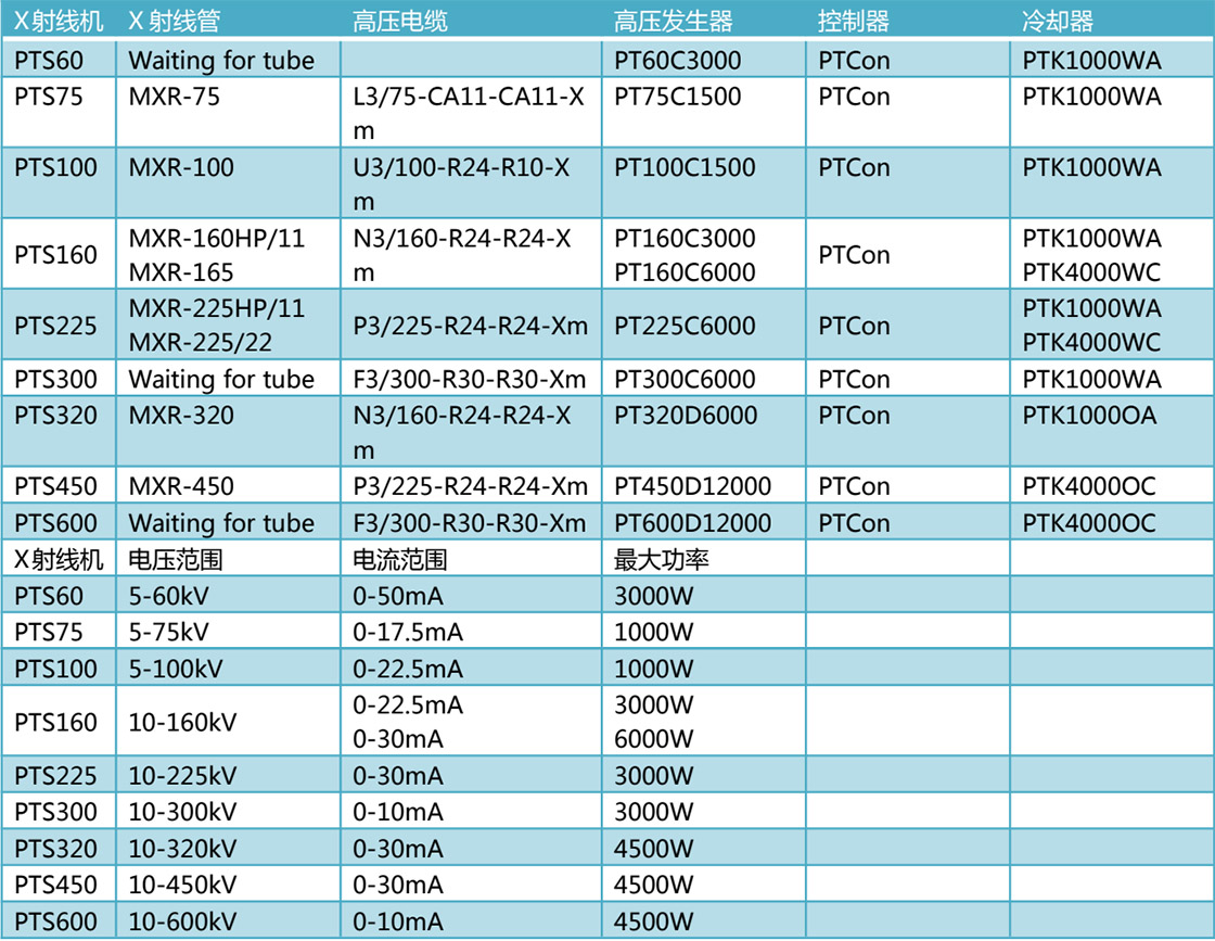 本表所有型號 X 射線管操作程序已嵌入 PTCon 控制器,使用時可選擇對應管型。